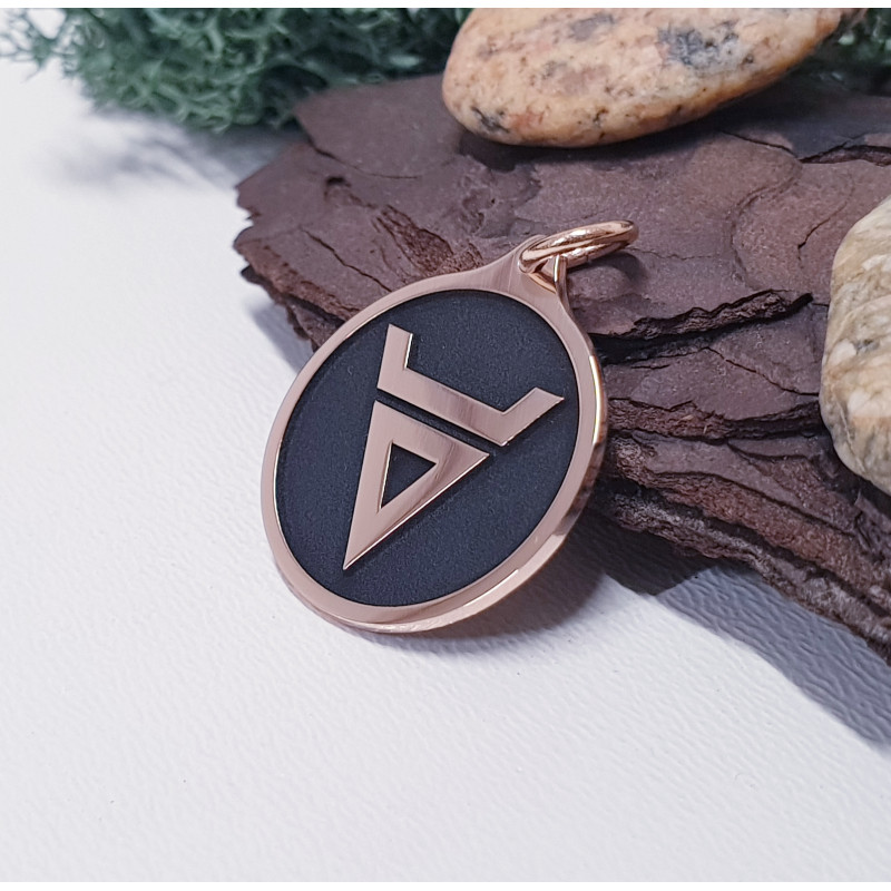 Zawieszka wykonana jest z polerowanego brązu, została głęboko wygrawerowana i ręcznie wypolerowana, a w zagłębieniach przyciemniona naturalną patyną. Średnica ok 20 mm.