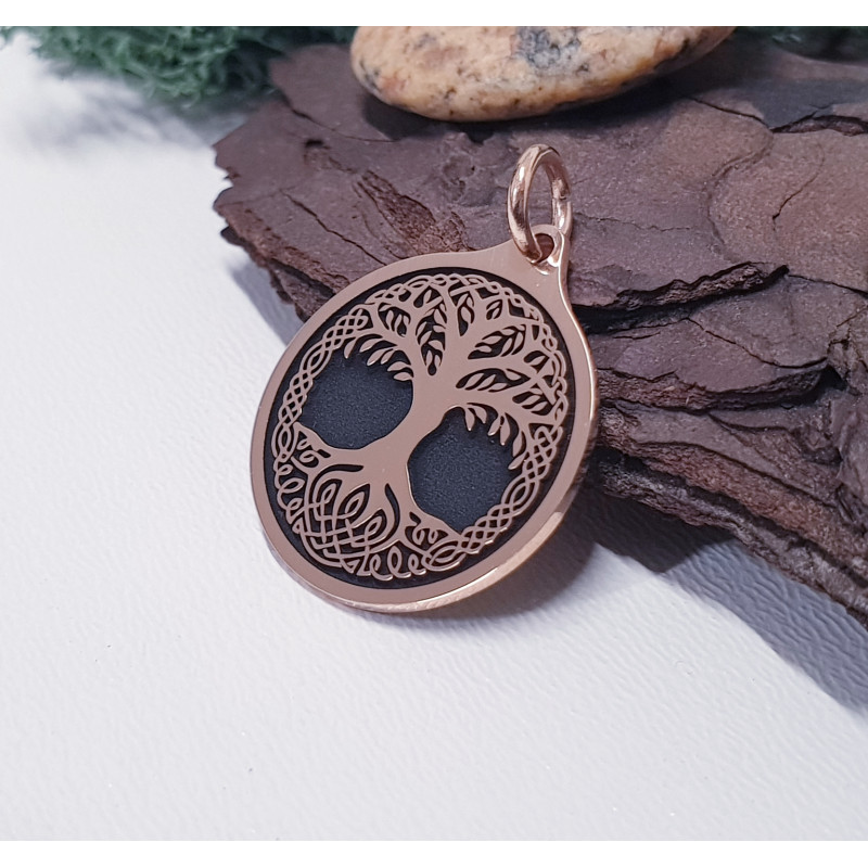 Zawieszka wykonana jest z polerowanego brązu, została głęboko wygrawerowana i ręcznie wypolerowana, a w zagłębieniach przyciemniona naturalną patyną. Średnica ok 20 mm.